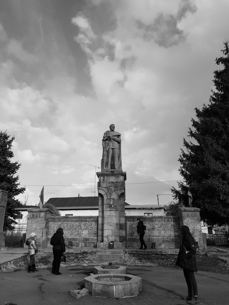 The village of Garni itself is really small and is living mainly off the (mainly Russian) tourists coming to visit the temple. This village did not escape the Soviet desire to leave its omnipresent footprint: a big memorial to the Second World War is visible when entering the village. Where an eternal flame was supposed to be burning, as stoker stands parched.
