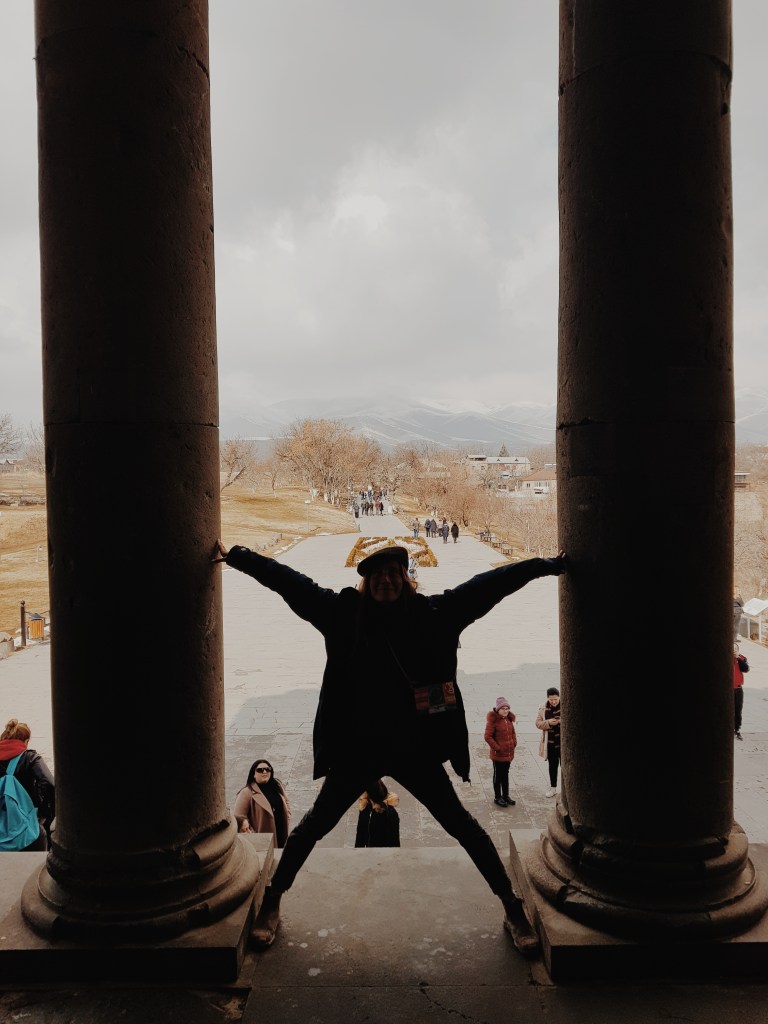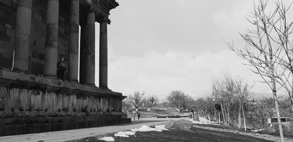 It was weekend, we had time on our hands, and we were in Armenia, a country known for its ancient culture. We’d been planning a bigger trip for a while, scanning the internet for places to visit. One particularly caught our attention: a pagan temple located near the village of Garni. For us Europeans, paganism sounds crazy and foreign, something that’s present in our history but wiped off the maps of our visible history. Thus, to see this temple seemed worth it: off we went. We made a trip to Yerevan, Armenia’s capital, from where we made a day trip to Garni. After about 30, 40 minutes on a marshrutka, where I got an intense ass-workout by half sitting on a seat, we arrived in the village.